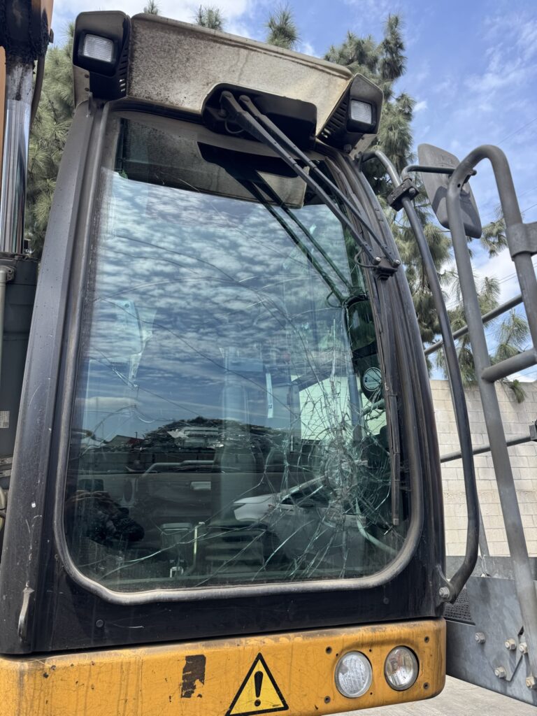 Heavy equipment & machinery can suffer the same glass damage as other vehicles. Sometimes, due to the nature of their work environment, heavy equipment is more susceptible to flying debris and is at a greater risk for glass damage. The big difference is when equipment glass is broken and the machine is not safely operable, it costs time and money.The glass in heavy equipment and farm machinery acts as a shield, protecting the machine operator from flying debris such as rocks, stones, and metal. Glass with cracks or breaks cannot provide the safety required by OSHA standards.Replacing broken glass on heavy equipment or farm machinery with OEM glass can be pricey. If a damaged window is flat laminated or tempered glass we may be able to provide you with replacement glass for significantly less. Laminated glass can be cut to size and installed on the job site to keep your equipment in service and safe. Tempered windows can also be installed quickly and efficiently at your location. Heavy equipment glass replacement can be performed at your project site for convenience and minimal down time for the machine and the operator. All installations meet OSHA standards and are guaranteed against leakage.